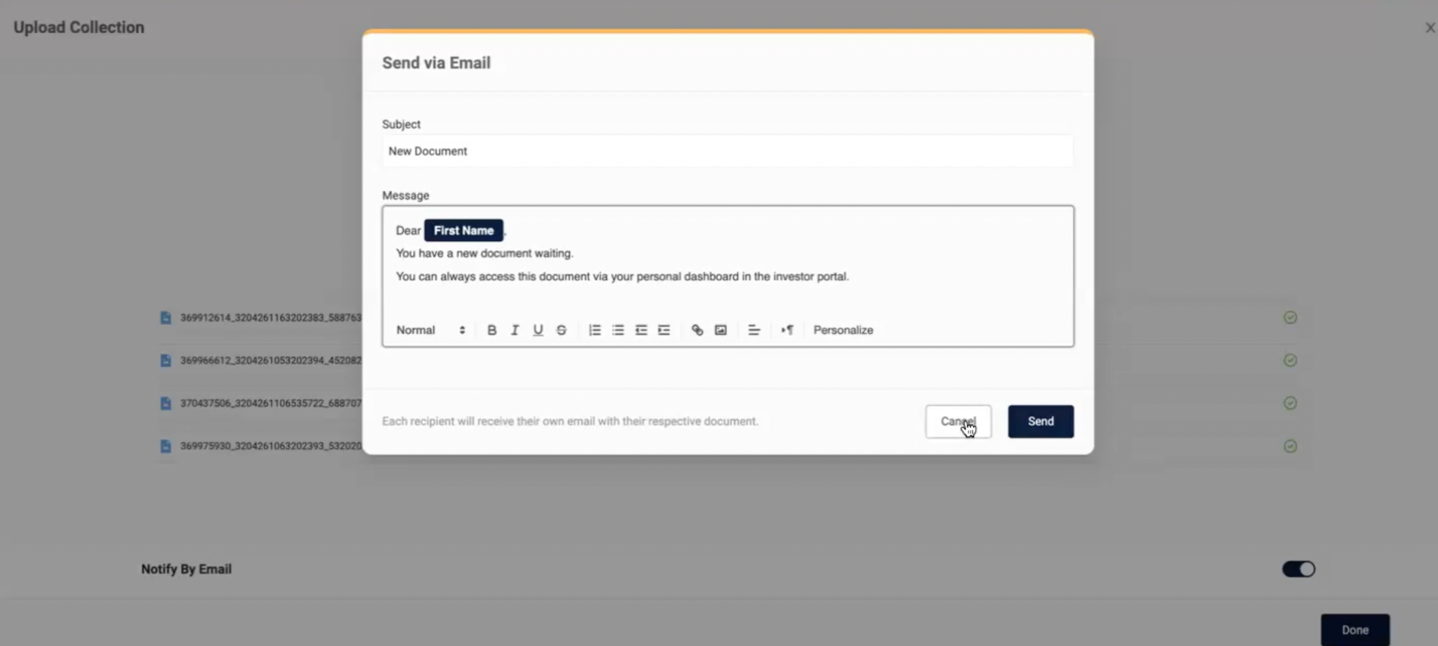 On the investor’s side, they can see and download all the documents made available to them directly from their investor portal.