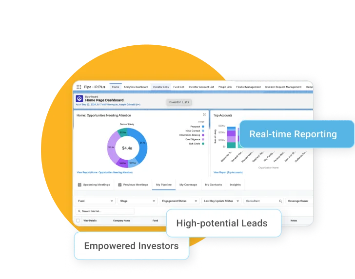 - Relationship management: investor portal, investor CRM, investor reporting, and document management