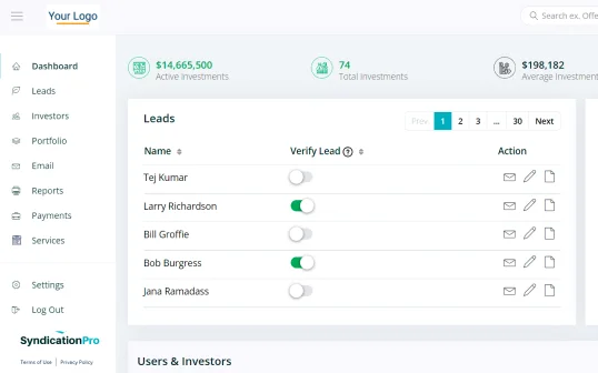 | SyndicationPro CRM | SyndicationPro investor portal |