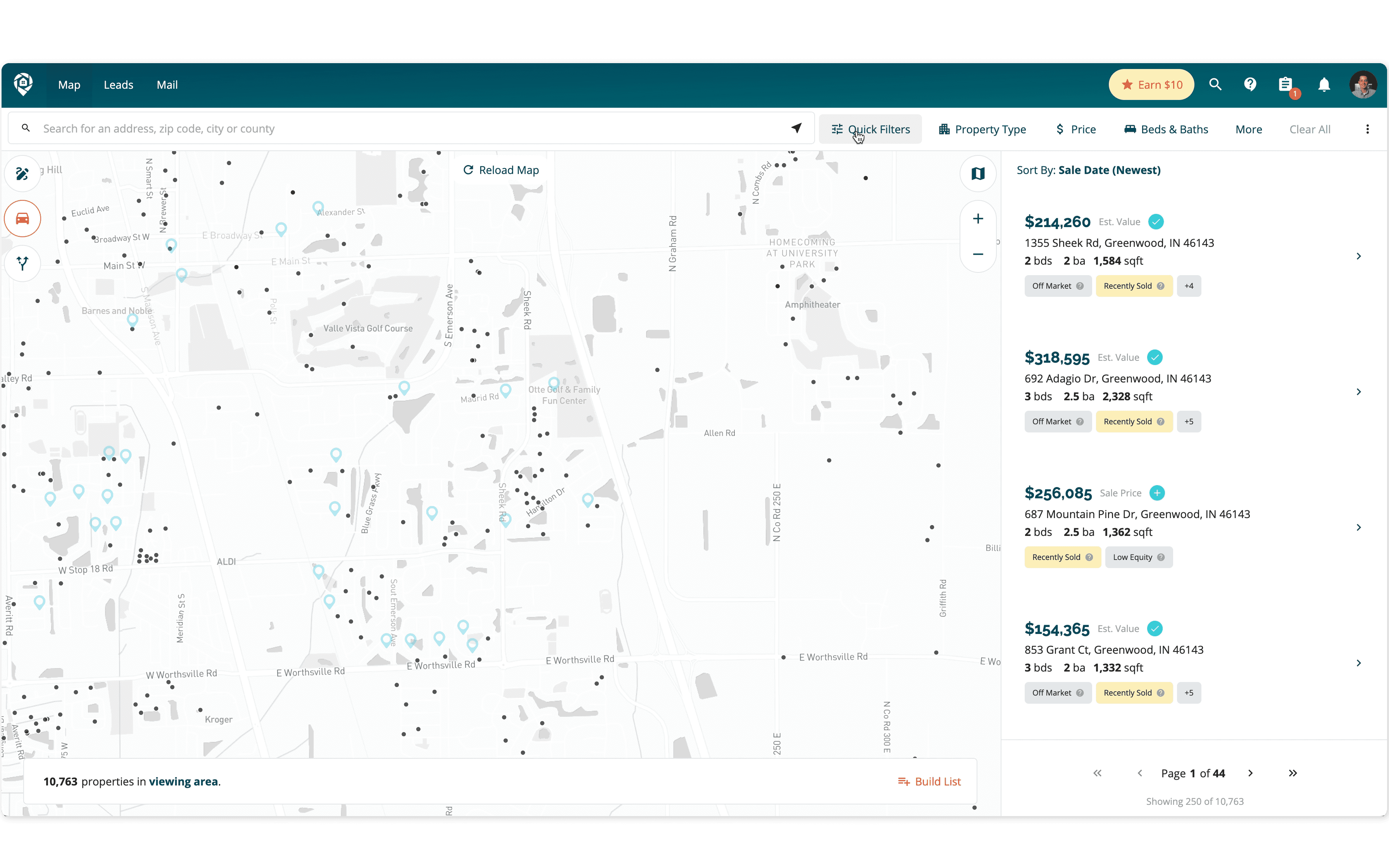 - Research: Use filters to find multiple properties that meet your investment criteria, such as mortgage financing details, property conditions, and ownership status.