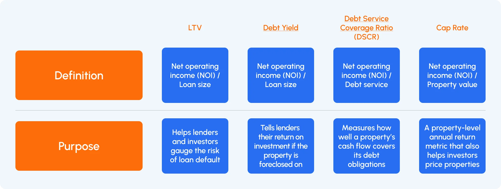 LTV vs. debt yield vs. DSCR vs. cap rate