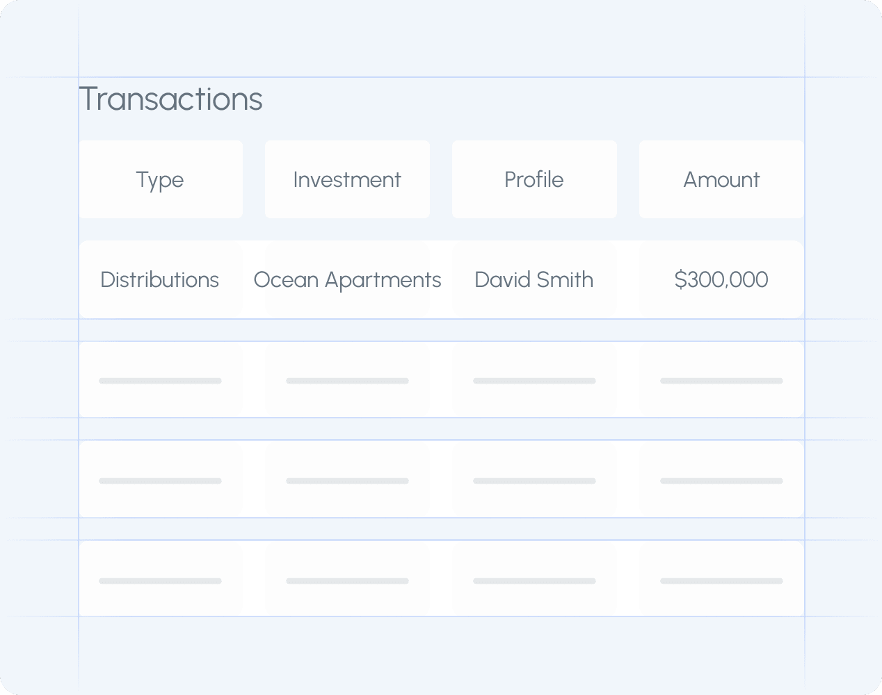 Elevate your investors' experience with a dedicated portal showing all transaction details. Enjoy clear views of transactions, comprehensive distribution breakdowns, and easy access to notices. Investors can sort, filter, and export transactions for simplified navigation and clear financial overviews.